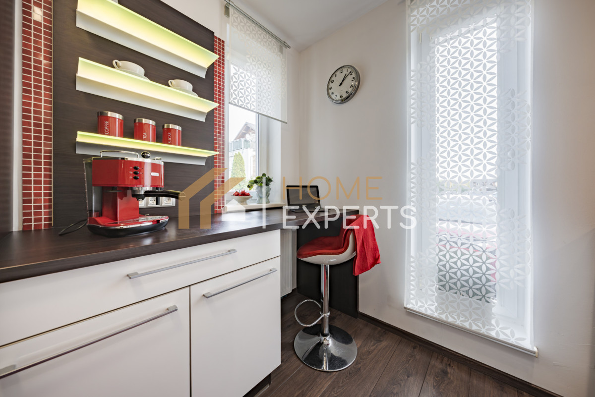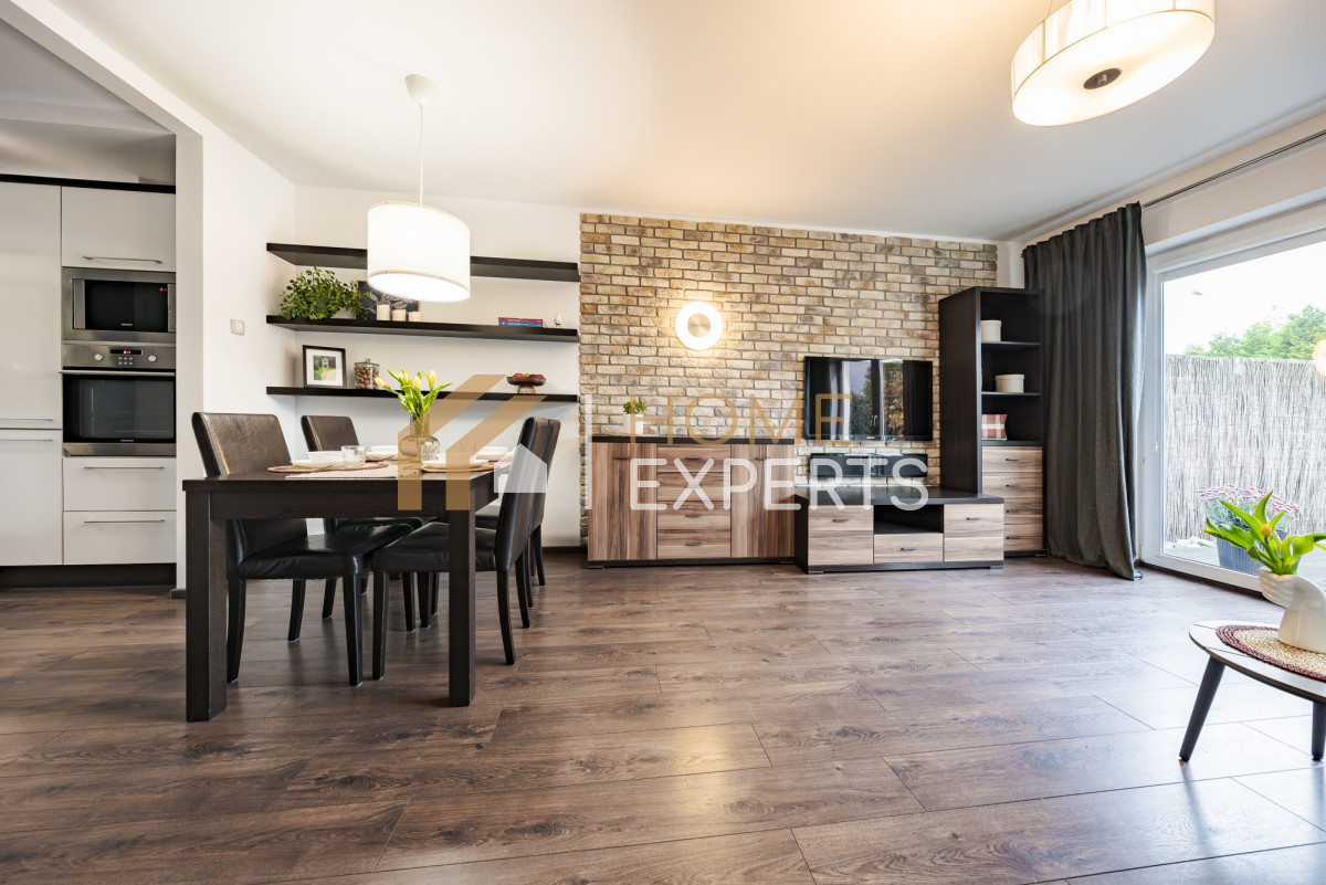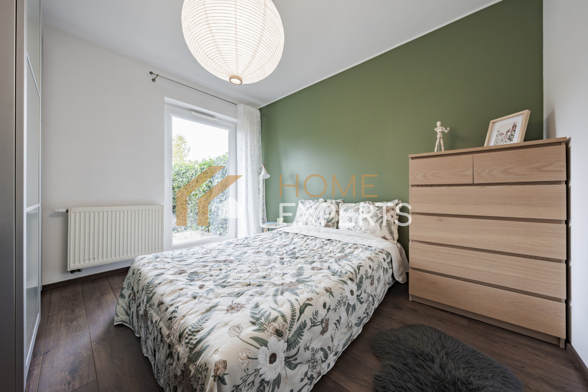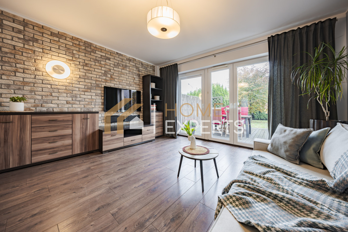 Z salonu i sypialni - usytuowanych od zachodniej strony - można wyjść na przestronny, drewniany taras oraz zagospodarowany ogród o powierzchni ok. 100 m2. Jest to zaciszna enklawa osłonięta wysoką zielenią, która stwarza poczucie prywatności w środku miasta.