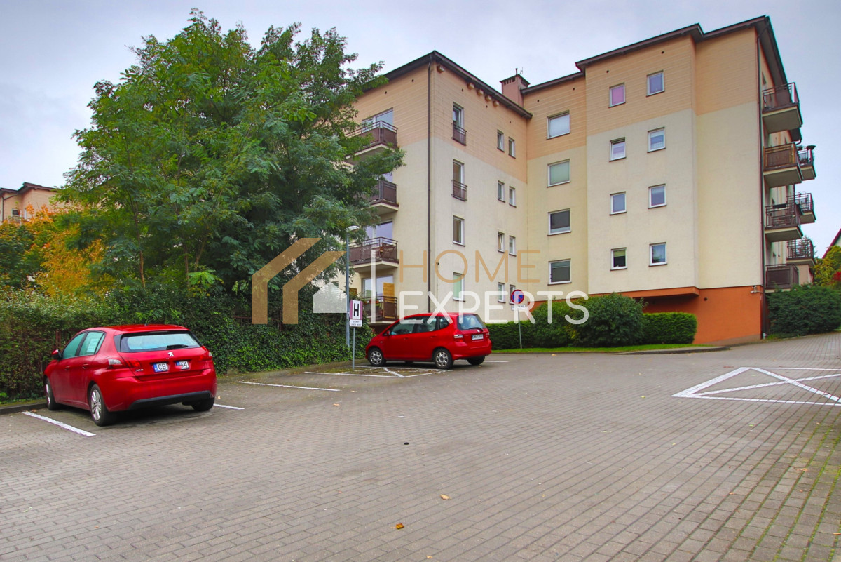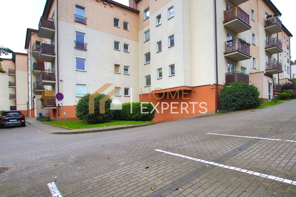 Przy budynku, za szlabanem znajdują się liczne miejsca postojowe.