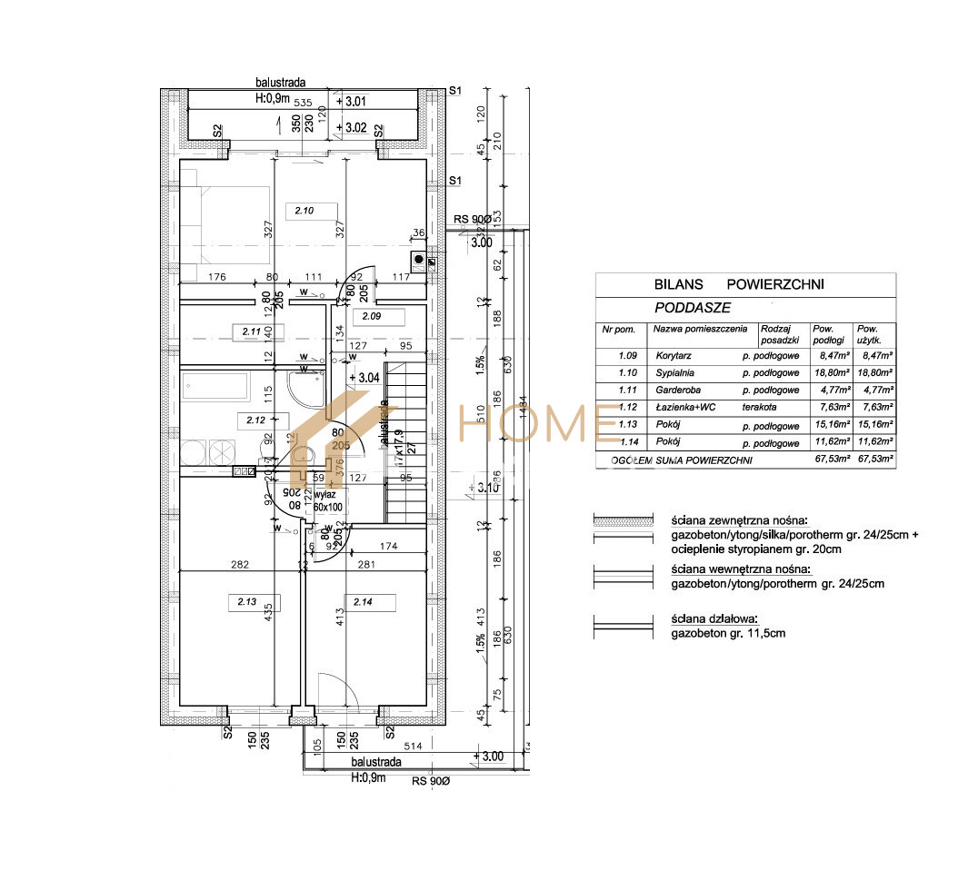 • izolacja dachu pianą natryskową min. 25 cm - brak mostków termicznych, wysoki komfort cieplny