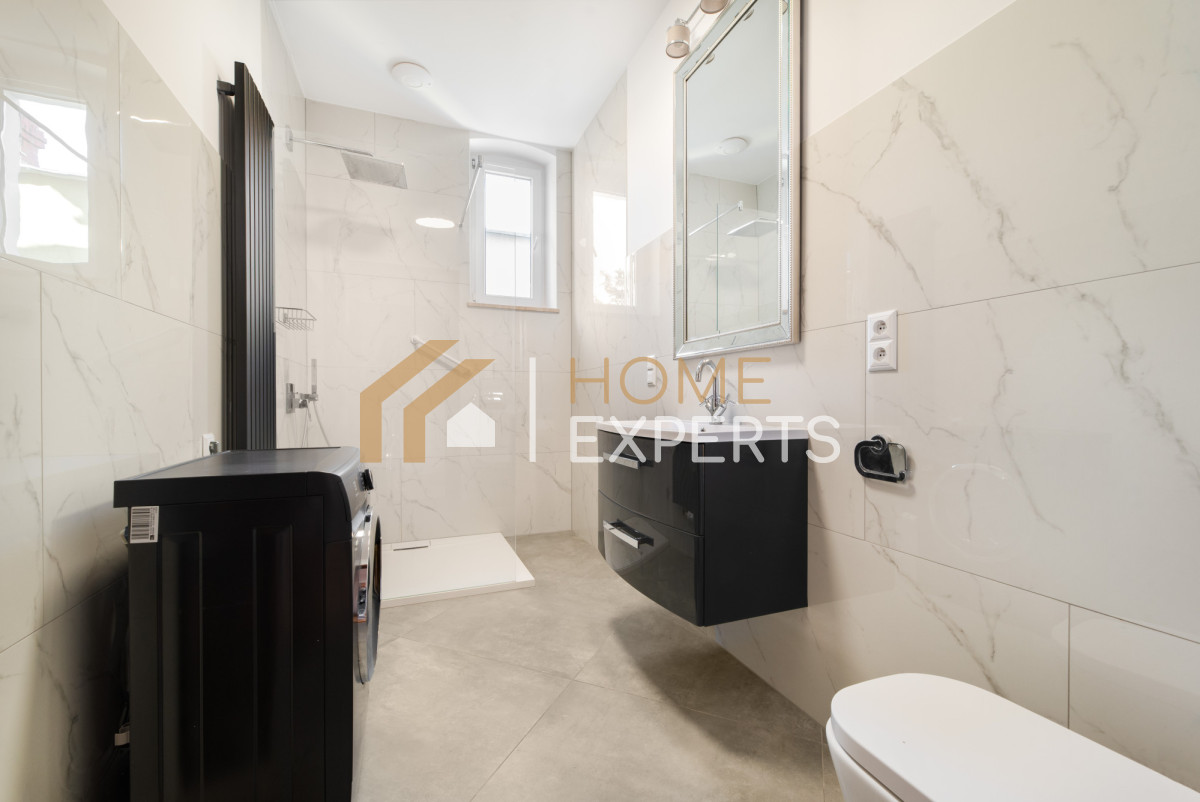 Łazienka z prysznicem i pralką - świeżo po remoncie,