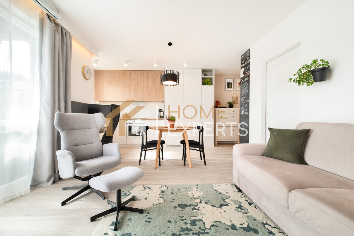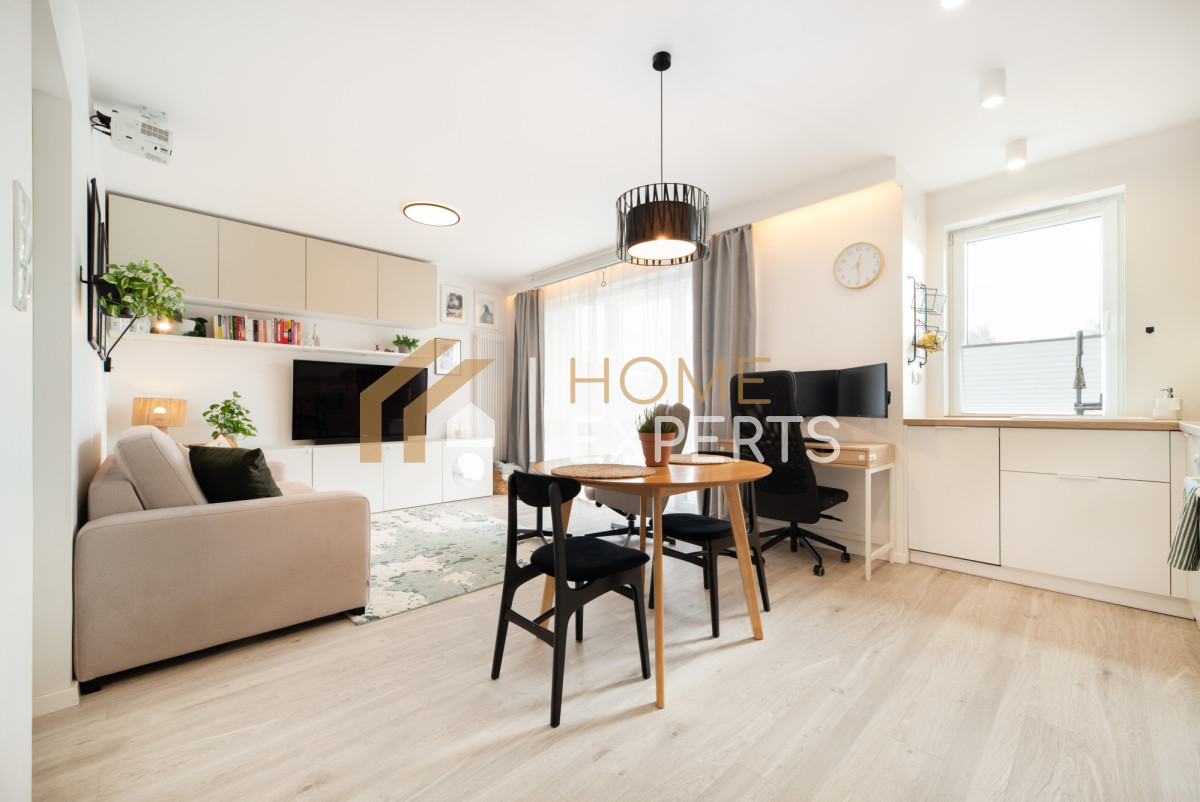 - praktyczny układ: przestronny salon z aneksem kuchennym, sypialnia, elegancka łazienka oraz przedpokój.