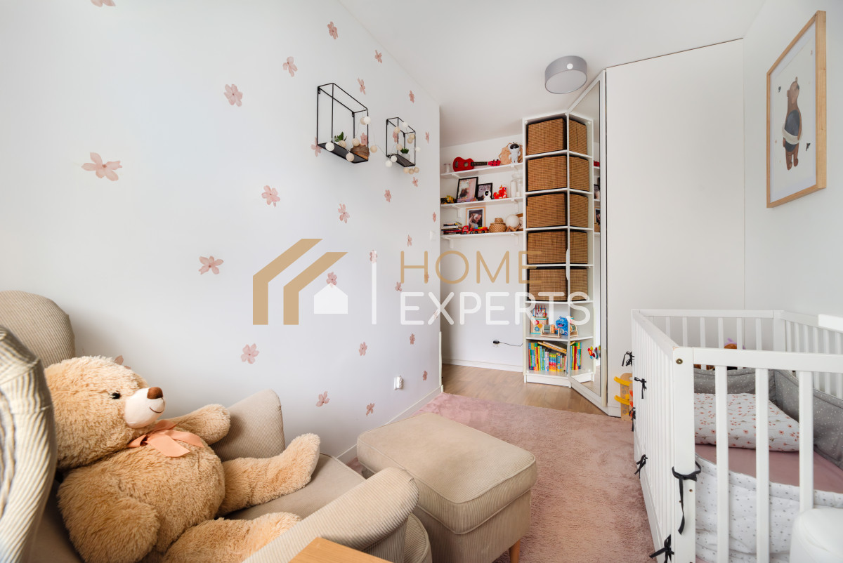 W cenie mieszkania pozostaje zabudowa kuchenna wraz z częścią sprzętów AGD (zmywarka, kuchenka), całe wyposażenie łazienki z wanną, szafką z umywalką (bez pralki), szafa w przedpokoju, zabudowa szafy z półkami w pokoju dziecięcym, duża pojemna szafa w zabudowie oraz rama łóżka w sypialni, zabudowy w przedpokoju oraz garderobie, stół i krzesła, meble RTV.
