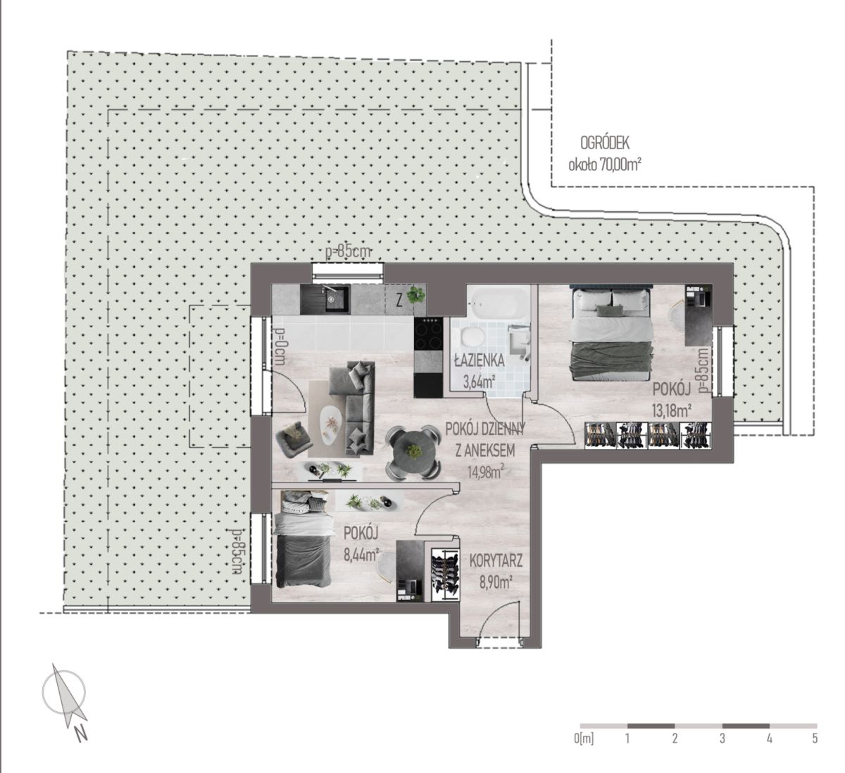 Gotowe nowe mieszkanie z dużym ogrodem o powierzchni około 70m2 wykończone pod klucz z zabudowami stałymi w kuchni i holl w cenie.