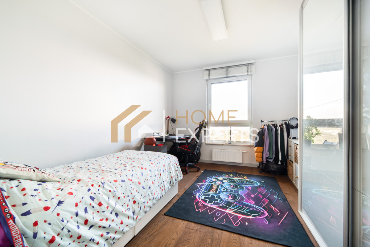 Dwie sypialnie pozwalają na funkcjonalne zaaranżowanie przestrzeni - jedna z nich stanowi komfortową sypialnię główną, druga natomiast zaaranżowana została na pokój dziecięcy, jednak może również pełnić rolę gabinetu czy pokoju gościnnego.