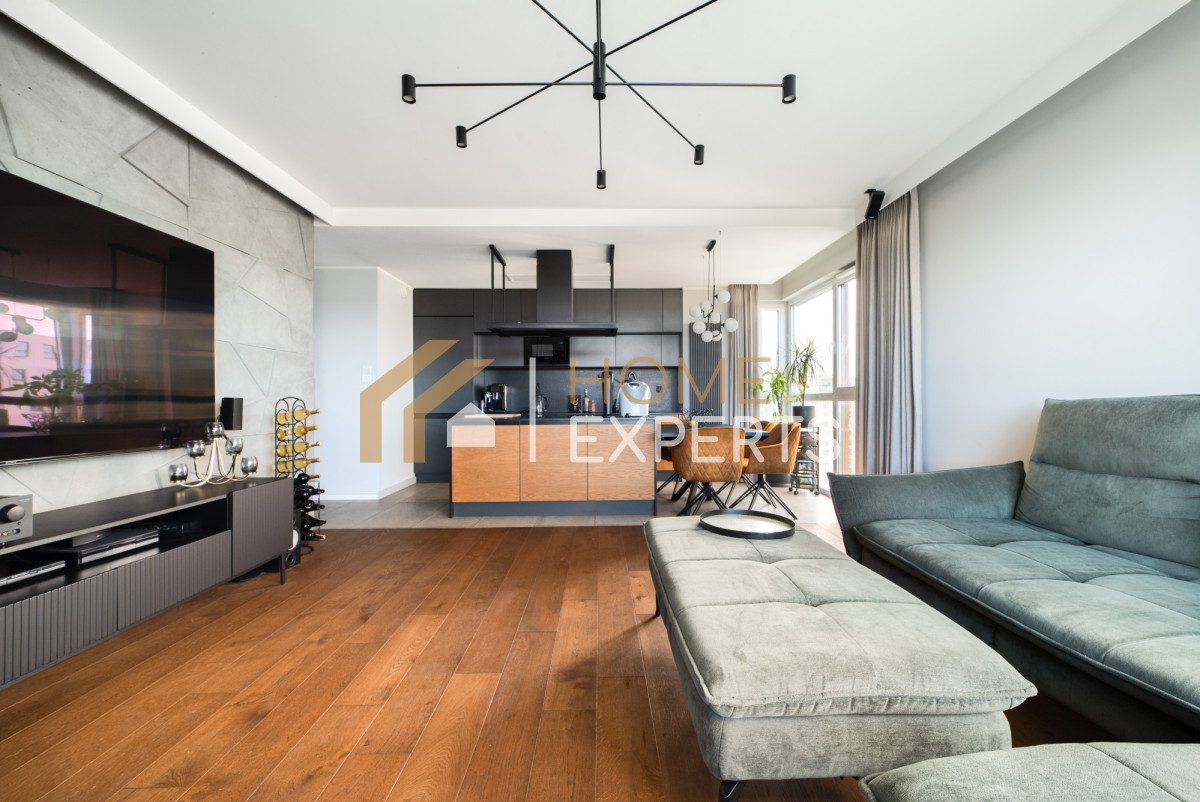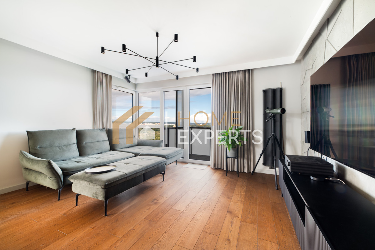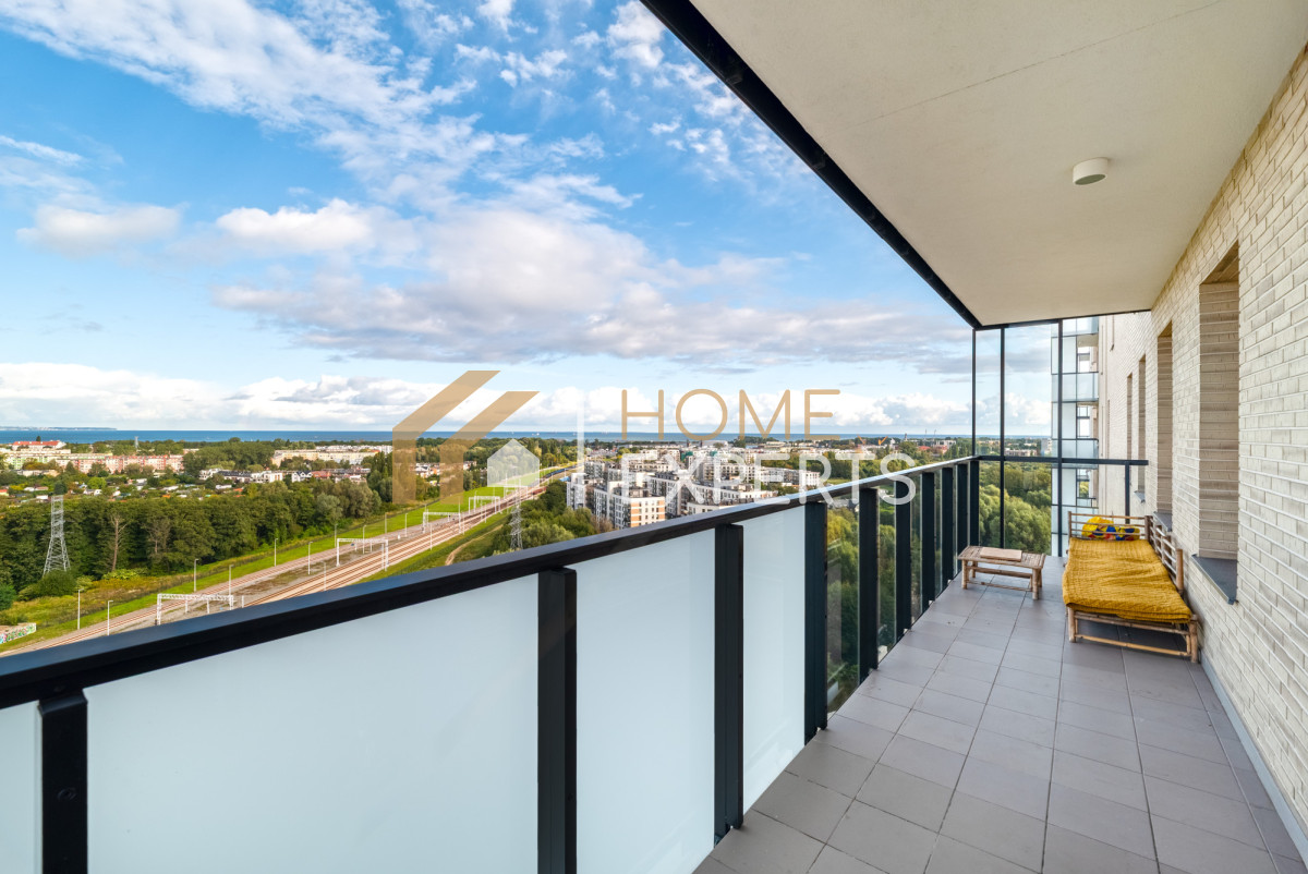 Centralnym punktem nieruchomości jest salon z aneksem kuchennym, z którego wyjdziemy na balkon z panoramicznym widokiem na Zatokę Gdańską, idealny do wypoczynku.