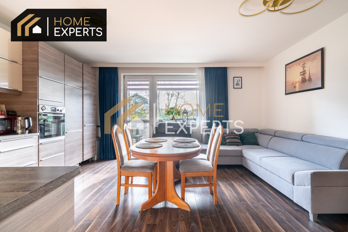 - przestronnego słonecznego salonu z aneksem kuchennym