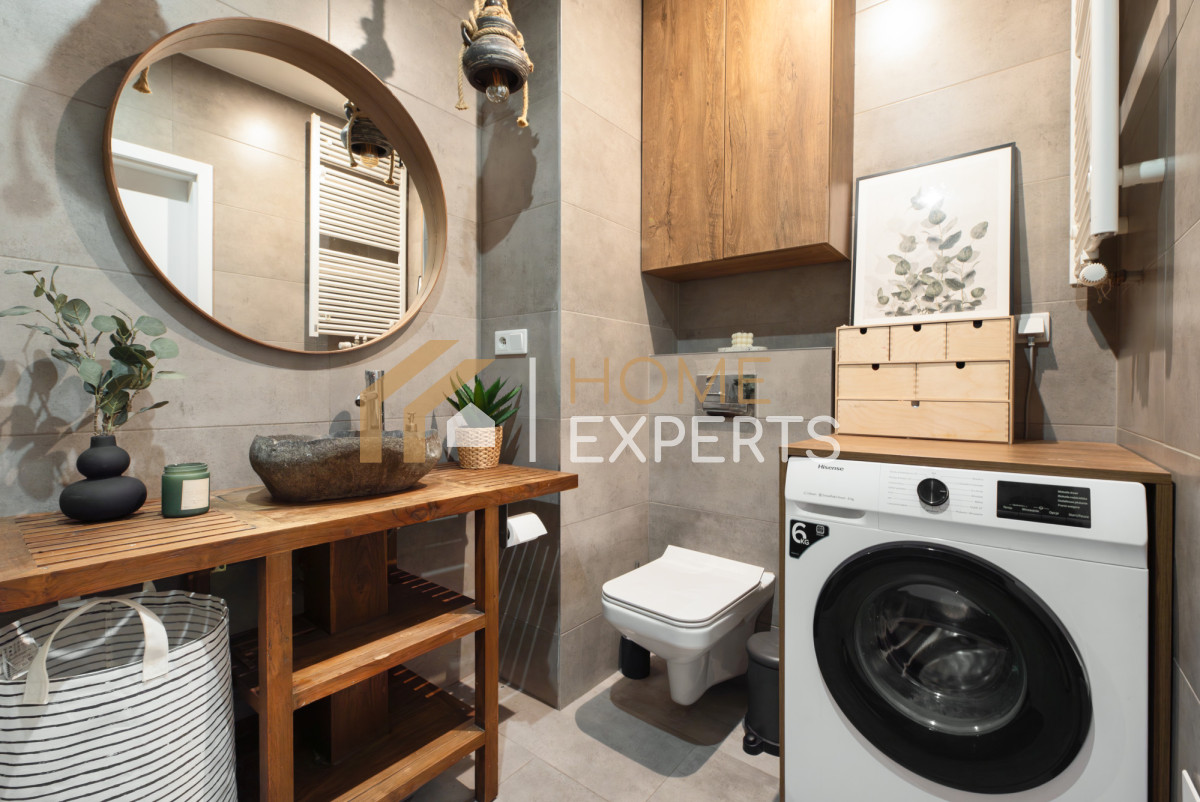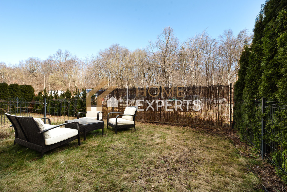 • W cenie mieszkania pozostaje niemalże całe wyposażenie widoczne na zdjęciach tj. zabudowa kuchenna wraz z wyspą i sprzętem AGD, sofa, stół i krzesła, meble RTV, łóżko, szafa i pozostałe meble w sypialni, całe wyposażenie łazienki z prysznicem typu walk-in i pralką, meble ogrodowe.