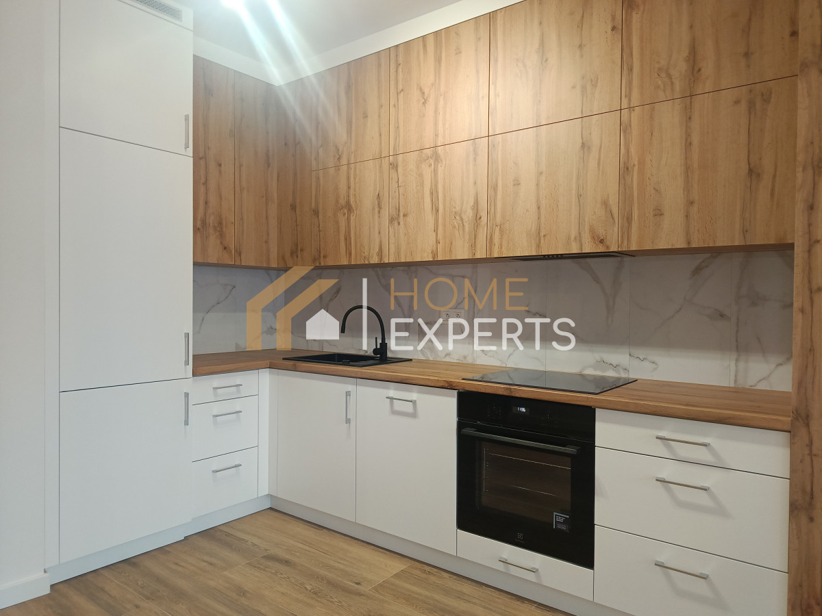 ŚWIEŻO WSTAWIONA ZABUDOWA KUCHENNA ORAZ SZAFA W ZABUDOWIE W PRZEDPOKOJU