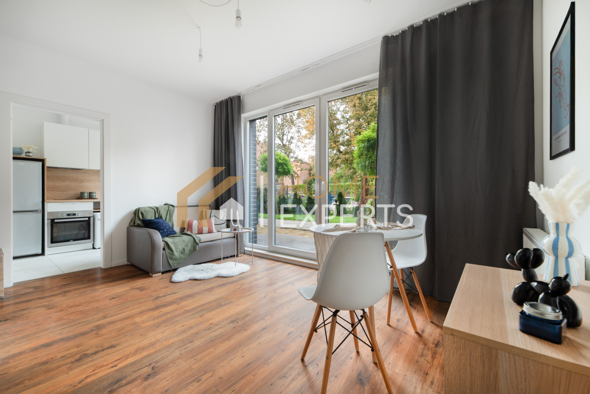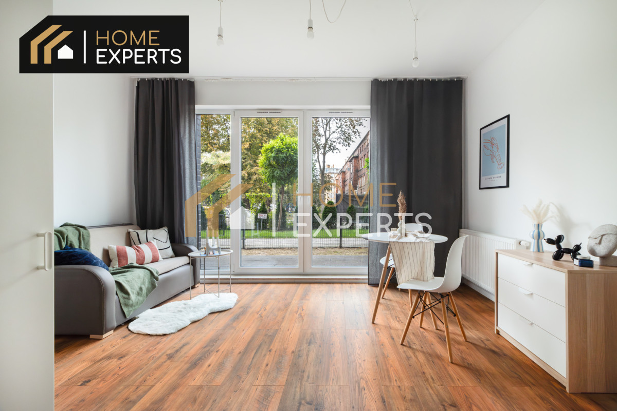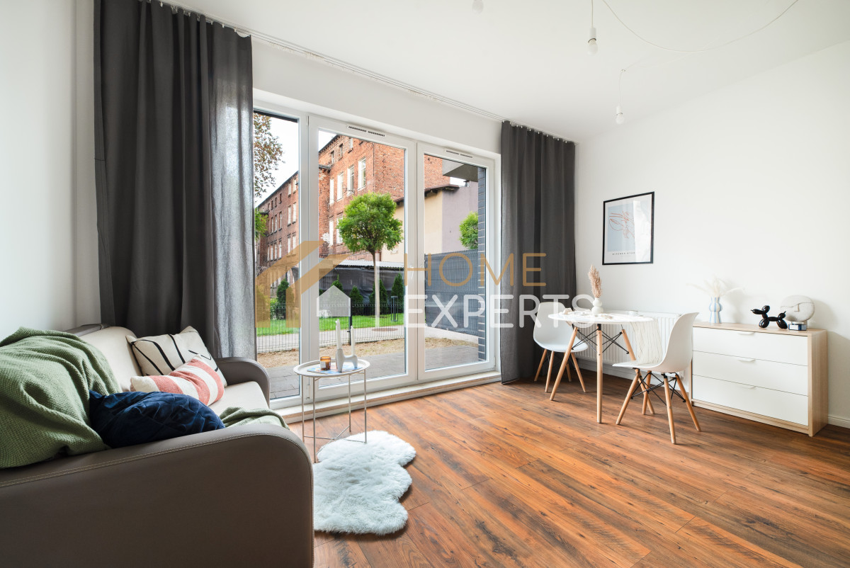 Na sprzedaż komfortowa kawalerka o powierzchni 35 m² zlokalizowana na parterze nowoczesnego budynku z 2018 roku na prestiżowym osiedlu Nowa Grobla (deweloper ATAL).