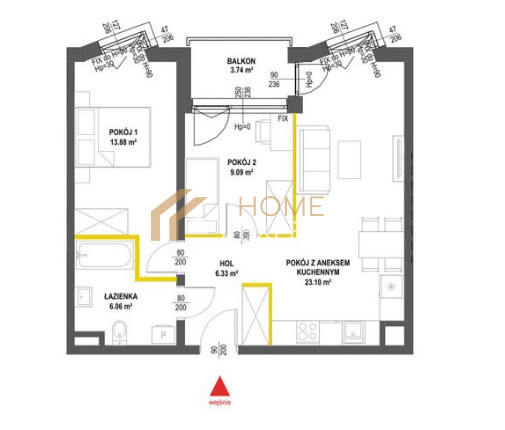 • Balkon (3,74 m²) - idealne miejsce na chwilę relaksu