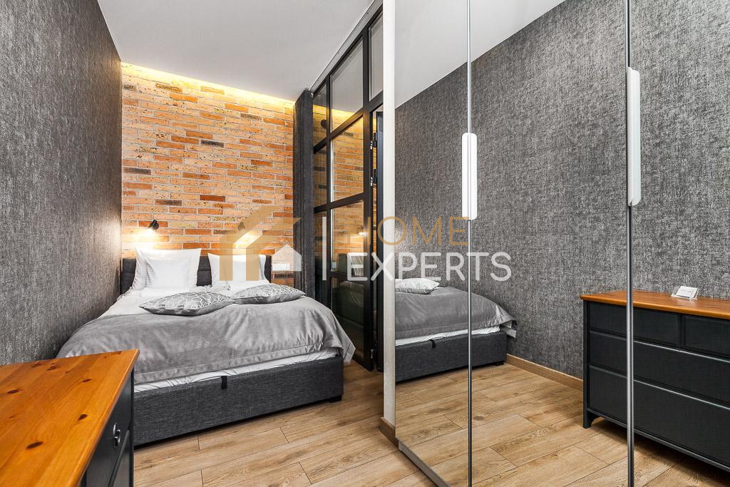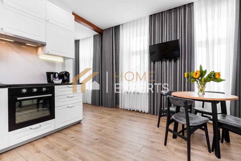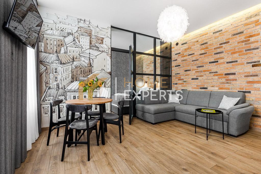 Mieszkanie o powierzchni 36,5 m2 składa się z sypialni, salonu z aneksem kuchennym, łazienki oraz przedpokoju, znajduje się w trzypiętrowej kamienicy z ok. 1890r.