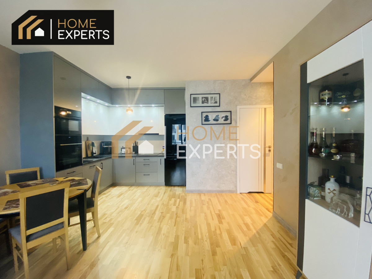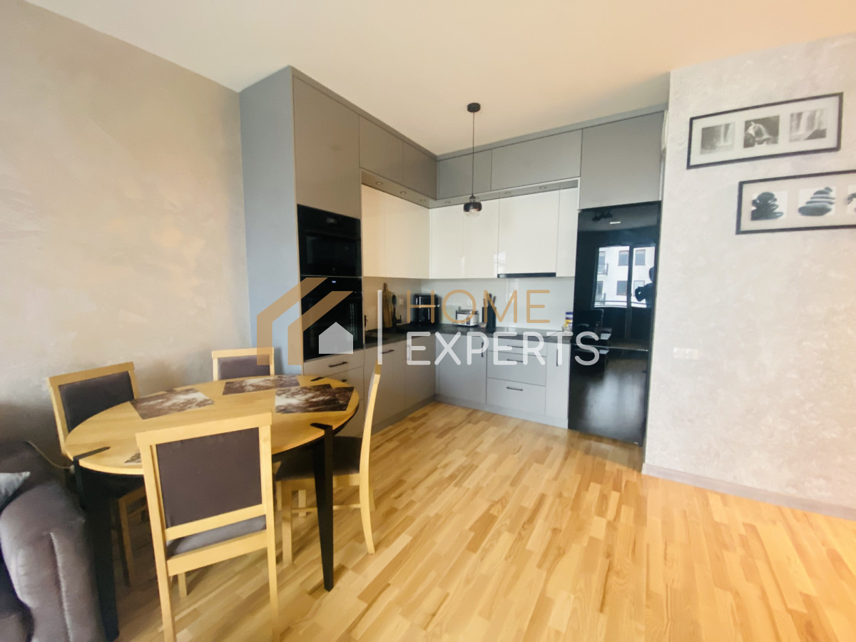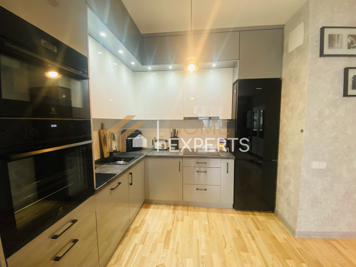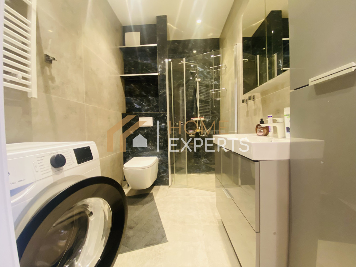 Nieruchomość jest wyposażona we wszystkie potrzebne do funkcjonowania sprzęty, takie jak: pralka, lodówka, piekarnik, kuchenka i zmywarka. Wszystkie meble oraz sprzęty w mieszkaniu są nowe i najwyższej jakości.